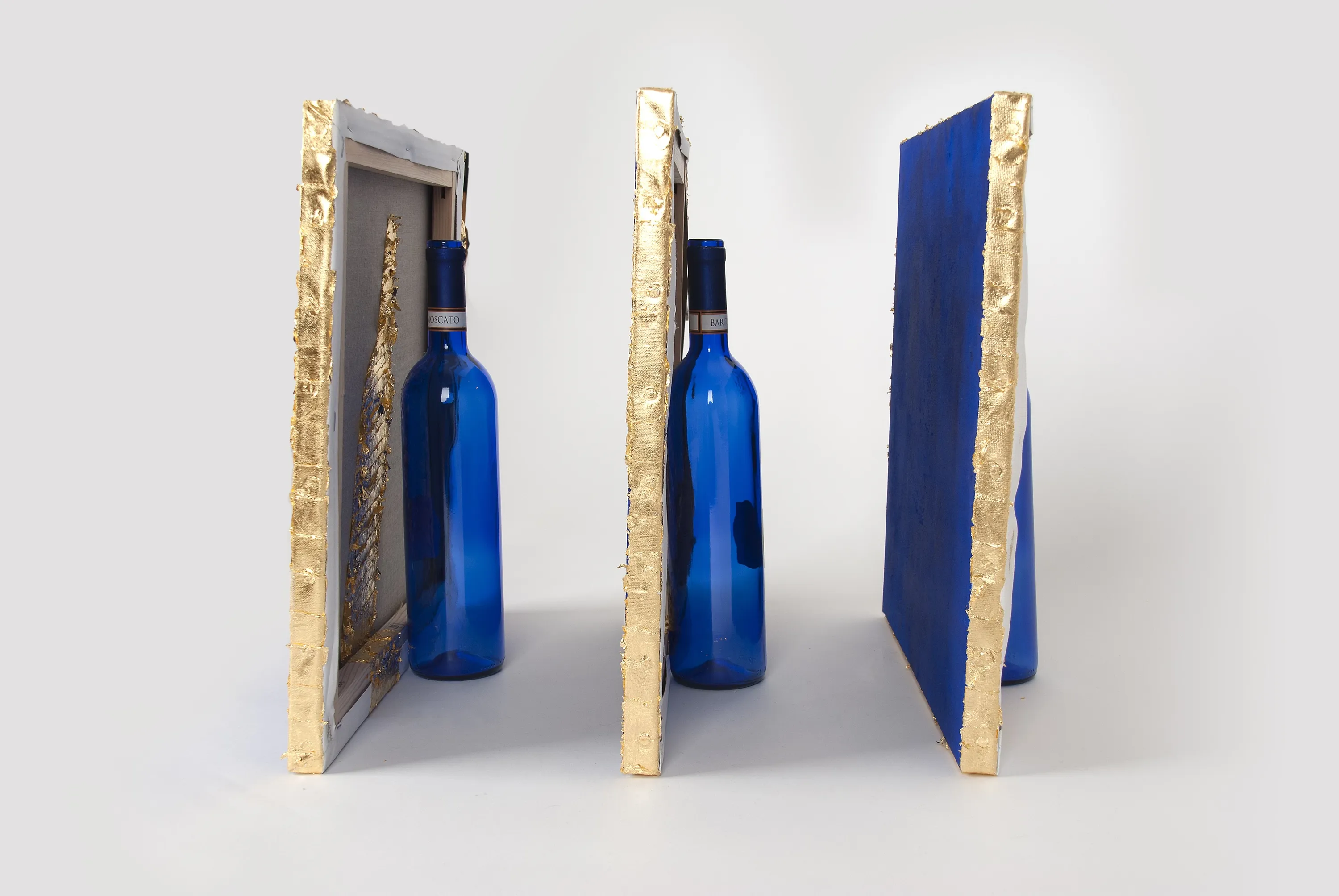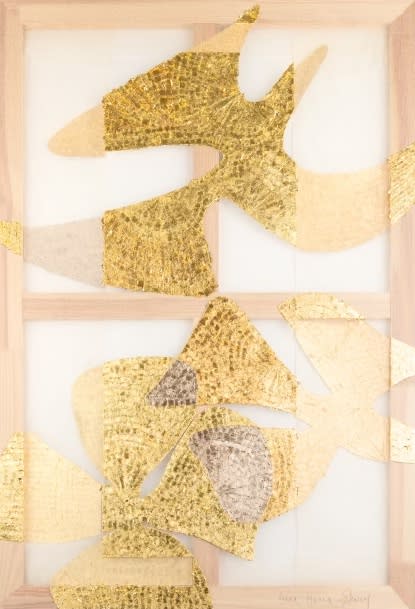 In her works, Anna Hanna Schwarz delves into a striking contrast between the delicate and meticulous movement of applying gold leaf and the sudden impact of an axe on wood or the sometimes swift application of color with a roller. These diametrically opposed gestures converge in a subtle balance. The influence of Cézanne is palpable; Anna Hanna Schwarz grew up in Aix-en-Provence in the family home, precisely where he painted his Sainte-Victoires. This connection with the master is evident in her works, especially in pieces like "Bois de Chêne," "Élusives Sainte-Victoire," and "Sainte-Victoire au-dessus de Dubidet." Her numerous travels to different cities in Morocco have undoubtedly influenced the artist in her use of color, harmonizing with the technique of the floating leaf, which can be seen in her series "Mosaïques de printemps" and "Variations."