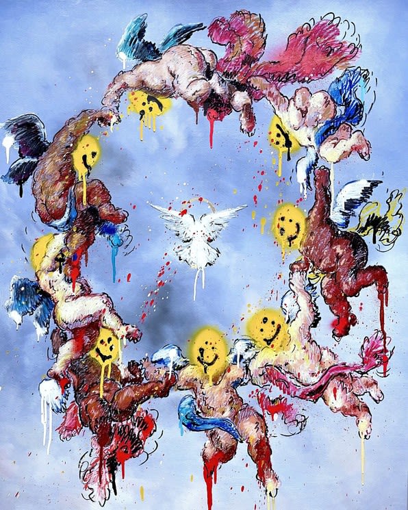 Today, Pelayo's work draws inspiration from both the old masters—Da Vinci, Caravaggio, Rembrandt, and Velazquez—and influential graffiti artists like RETNA, Shepard Fairey, and EL MAC. In 2017, his work caught the eye of renowned rapper and collector Alvin "Westside Gunn" Worthy, leading to collaborations on album covers and artworks for Gunn’s Griselda Records, including pieces for Gunn’s personal collection. Pelayo’s paintings have since gained global recognition, attracting high-profile collectors such as Westside Gunn, Benny The Butcher, Jeff Hamilton, Shepard Fairey, Jaysse Lopez, and Everlast of House of Pain.
